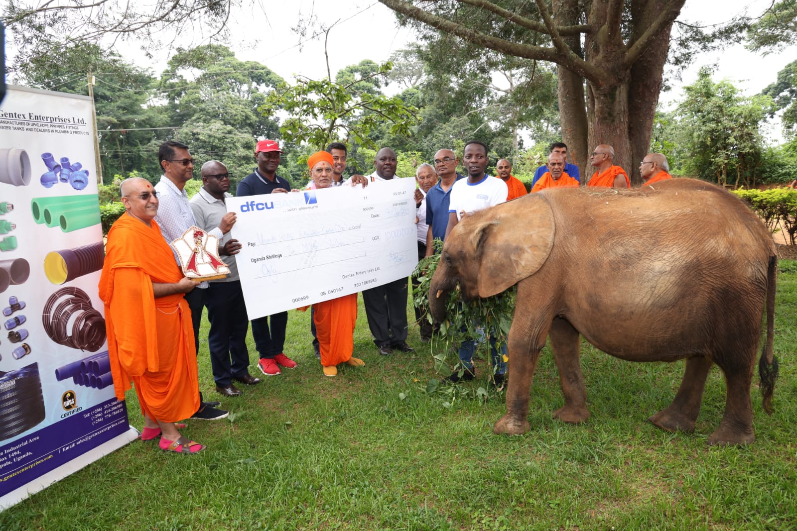તથા શ્રી સ્વામિનારાયણ ગાદી સંસ્થાનના પ્રવર્તમાન આચાર્ય સ્વામીશ્રી મહારાજે એન્ટેબે ઝૂ – યુગાન્ડા વાઈલ્ડ લાઈફમાં રહેતા હાથી, ગેંડા, જિરાફ, સિંહ, વાઘ, ચિમ્પાન્ઝિ વગેરે પ્રાણીઓને અભયદાન તથા તેમનાં જીવનનિર્વાહ – રક્ષણ માટે ૧૦ મિલિયન યુગાન્ડા શિલિંગનો ચેક સહયોગી માધાપર – કચ્છના વેલજીભાઈ ઝીણાભાઈ ગોરસિયા એન્ડ સન્સ પરિવાર ઝેન્ટેક્ષ એન્ટર પ્રાઈઝીસ અને વોટર ટેન્કોના સહયોગી માંડવીના નારણભાઈ રવજીભાઈ વેકરીયા પરિવાર – ઘનશ્યામ હાર્ડવેર લિમિટેડ તરફથી આપવામાં આવી હતી. આ કાર્યક્રમમાં મોટી સંખ્યામાં સ્થાનિક તથા વિદેશી પર્યટકો પણ ઉપસ્થિત રહ્યા હતા.