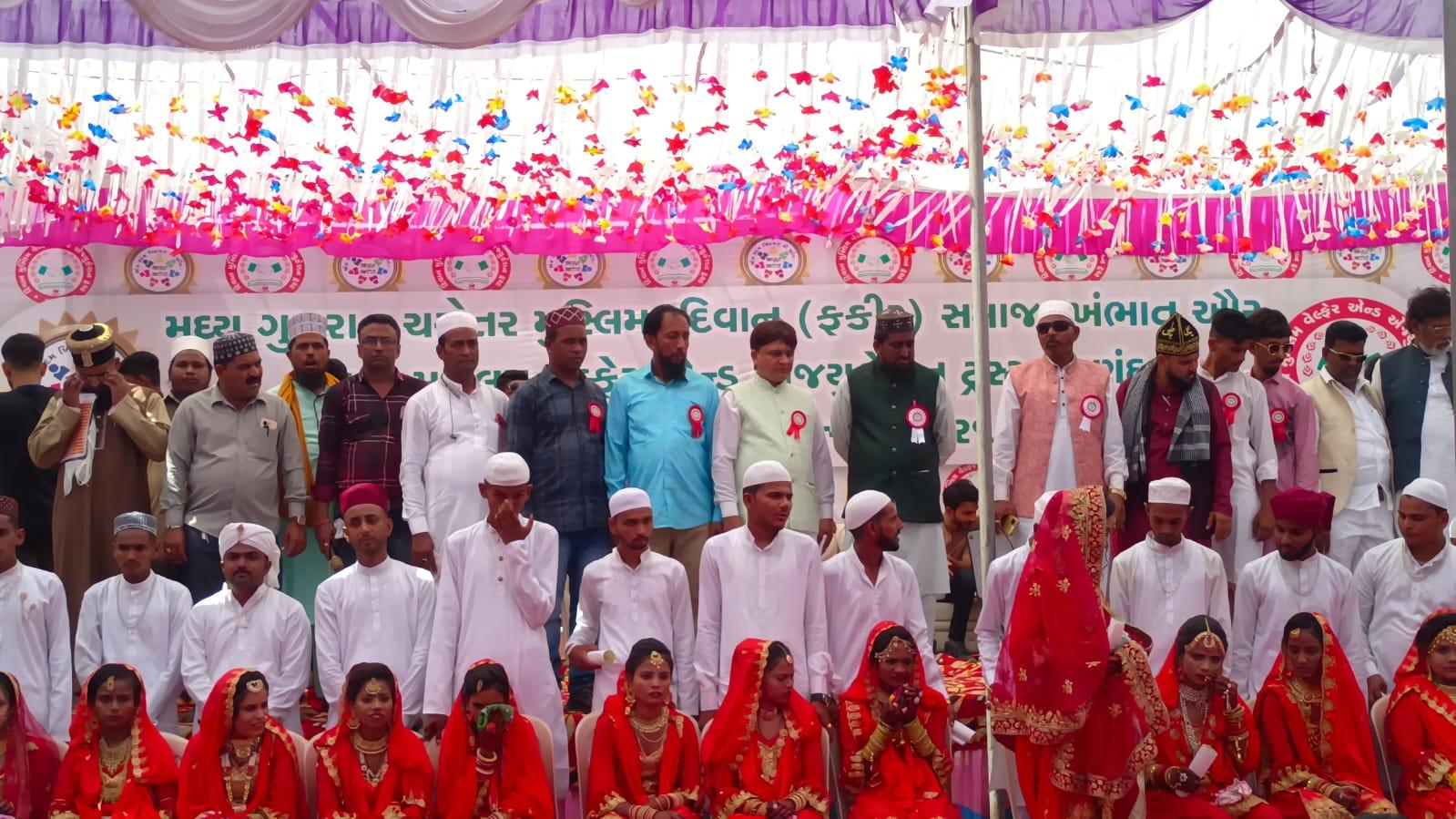 આણંદ જિલ્લા ના ખંભાત શહેર માં મધ્ય ગુજરાત ચરોતર મુસ્લિમ દિવાન ફકિર સમાજ નો બીજો સમુહ લગ્નન યોજાયો.મુસ્લિમ સમાજમાં ઘર કરી ગયેલા કુરિવાજોને તિલાંજલી આપવા અને બિનજરૂરી ખર્ચ ઉપર કાપ મુકી સાદગી સભર લગ્ન કરવામાં આવે તેવા શુભ સંદેશ ફેલાવવાના આશયથી સમુહ લગ્નનું આયોજન કરવામાં આવ્યું
